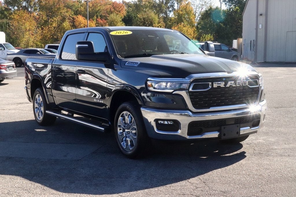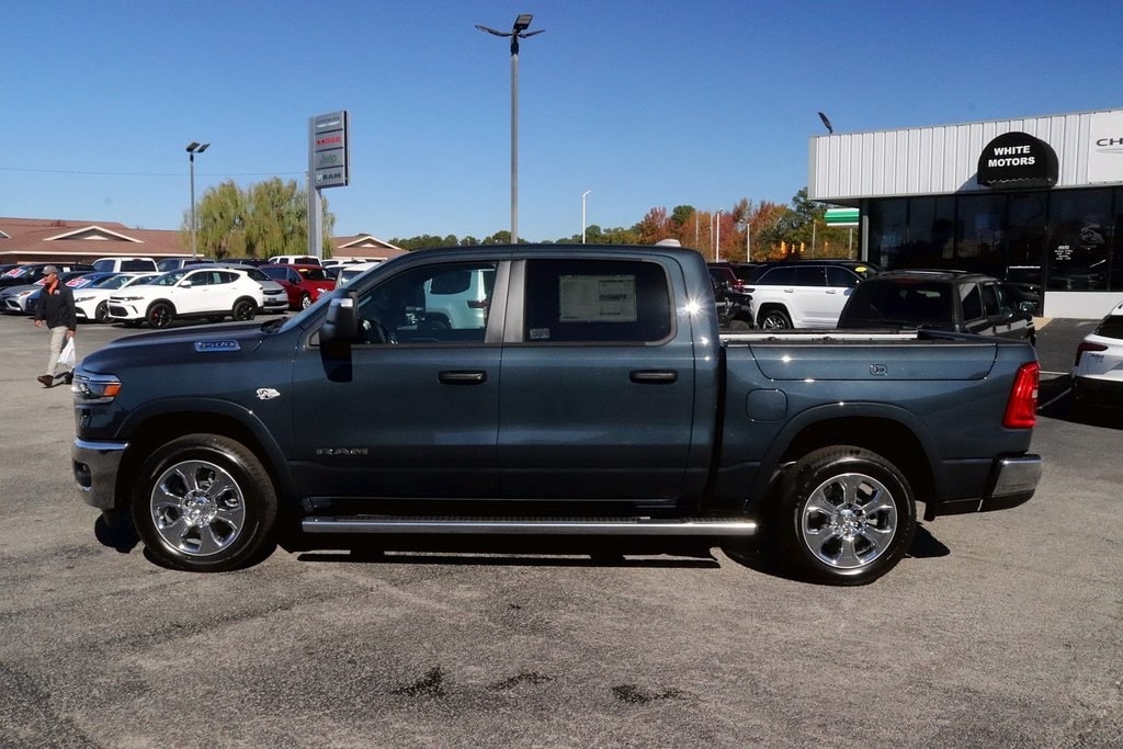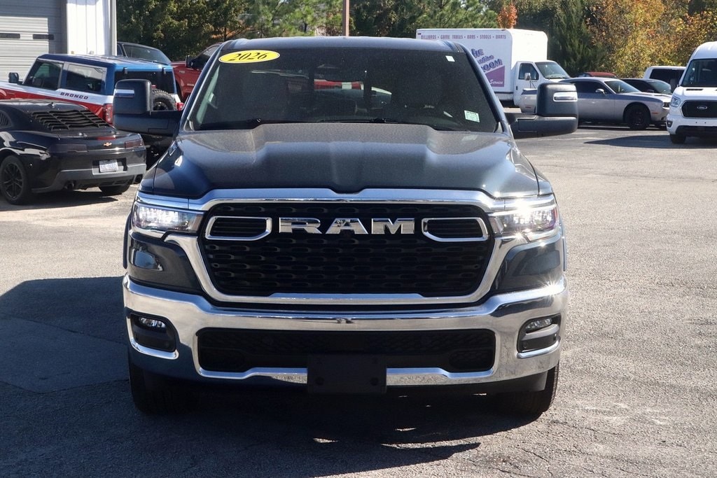 Equipped with Big Horn Level 2 Equipment Group (115V Auxiliary Power Outlet, 115V Auxiliary Rear Power Outlet, 12" Touchscreen Display, 2nd Row In Floor Storage Bins, 3 Rear Seat Head Restraints, 4 Way Front Headrests, 400W Inverter, 4G LTE Wi-Fi Hot Spot, 9 Amplified Speakers w/Subwoofer, Air Conditioning ATC w/Dual Zone Control, Apple CarPlay, Auto Power-Folding Mirrors, Auto-Dimming Exterior Driver Mirror, Auto-Dimming Rear-View Mirror, Black Exterior Mirrors, Black Premium Power Mirrors, Body Color Fender Flares, Bucket Seats, Center Console Parts Module, Cluster 7.0" TFT Color Display, Configurable Drive Mode, Connected Travel & Traffic Services, Connectivity - US/Canada, Convex Wide-Angle Exterior Mirror Insert, Deluxe Cloth Bucket Seats, Disassociated Touchscreen Display, Exterior Mirrors Courtesy Lamps, Exterior Mirrors w/Heating Element, Exterior Mirrors w/Supplemental Signals, Front Seat Back Map Pockets, Full Length Floor Console, Global Telematics Box Module (TBM), Glove Box Lamp, Google Android Auto, GPS Antenna Input, GPS Navigation, HD Radio, Heated Front Seats, Heated Steering Wheel, Integrated Center Stack Radio, Integrated Voice Command w/Bluetooth, Leather Wrapped Steering Wheel, LED Dome Lamp w/On/Off Switch, LED Footwell Lighting, Manual Adjust 4-Way Front Passenger Seat, Media Hub w/2 Charge Only USBs, Overhead LED Lamps, Power 2-Way Driver Lumbar Adjust, Power Adjust 8-Way Driver Seat, Power Adjustable Pedals, Premium Overhead Console, Radio: Uconnect 5 Nav w/12.0" Display, Rear 60/40 Folding Seat, Rear Center Armrest, Rear Power Sliding Window, Rear Window Defroster, Remote Tailgate Release, Security Alarm, SiriusXM Radio Service, SiriusXM w/360L, Steering Wheel Mounted Audio Controls, Sun Visors w/Illuminated Vanity Mirrors, Universal Garage Door Opener, USB Host Flip, and Wheels: 20" x 9" Aluminum Chrome Clad (WRK)), Quick Order Package 27Z Big Horn, Trailer Tow Group (DISC) (Accent Color Tailgate Handle, Black Trailer Tow Power Mirrors, Manual Folding Exterior Mirrors, Manual Telescoping Mirrors, Mirror Clearance/Running Lights, Power-Adjustable Convex Aux Mirrors, Trailer Brake Control, Trailer Reverse Steering Control, Trailer Tire Pressure Monitoring System, and Trailer Tow Mirrors), 33 Gallon Fuel Tank, 4-Wheel Disc Brakes, 48V Belt Starter Generator, 6 Speakers, ABS brakes, Air Conditioning, Alloy wheels, AM/FM radio, Anti-Spin Differential Rear Axle, Apple CarPlay/Android Auto, Auto High-beam Headlights, Brake assist, Bumpers: chrome, Cloth Bucket Seats, Cluster 12" TFT Color Display, Compass, Delay-off headlights, Driver door bin, Dual front impact airbags, Dual front side impact airbags, Electronic Stability Control, Exterior 115V AC Outlet, Front anti-roll bar, Front Bucket Seats, Front Center Armrest w/Storage, Front fog lights, Front License Plate Bracket, Front reading lights, Front wheel independent suspension, Fully automatic headlights, Heated door mirrors, Illuminated entry, Low tire pressure warning, Manual Adjust 4-Way Driver Seat, Manufacturer's Statement of Origin, MOPAR Front & Rear Rubber Floor Mats, MyFlexCare Service Plan, Occupant sensing airbag, Outside temperature display, Overhead airbag, Overhead console, Panic alarm, ParkView Rear Back-Up Camera, Passenger door bin, Passenger vanity mirror, Power door mirrors, Power steering, Power windows, Radio data system, Radio: Uconnect 5 W w/8.4" Display, RAM Grille Badge - Chrome, RamBox Cargo Management System, Rear anti-roll bar, Rear step bumper, Rear Wheelhouse Liners, Remote keyless entry, Spe