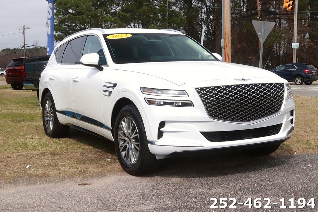 Equipped with Option Group 01, 12 Speakers, 4-Wheel Disc Brakes, 4.363 Axle Ratio, ABS brakes, Air Conditioning, Alloy wheels, AM/FM radio: SiriusXM, Android Auto & Apple CarPlay, Anti-whiplash front head restraints, Auto High-beam Headlights, Auto tilt-away steering wheel, Auto-dimming door mirrors, Auto-dimming Rear-View mirror, Auto-leveling suspension, Automatic temperature control, Brake assist, Bumpers: body-color, Compass, Delay-off headlights, Driver door bin, Driver vanity mirror, Dual front impact airbags, Dual front side impact airbags, Electronic Stability Control, Emergency communication system: Genesis Connected Services, Exterior Parking Camera Rear, Four wheel independent suspension, Front anti-roll bar, Front Bucket Seats, Front Center Armrest, Front dual zone A/C, Front reading lights, Fully automatic headlights, Garage door transmitter: HomeLink, Genuine wood console insert, Genuine wood dashboard insert, Genuine wood door panel insert, Heated door mirrors, Heated Front Bucket Seats, Heated front seats, Heated steering wheel, Illuminated entry, Knee airbag, Leather steering wheel, Leatherette Seating Surfaces, Low tire pressure warning, Memory seat, Navigation System, Occupant sensing airbag, Outside temperature display, Overhead airbag, Overhead console, Panic alarm, Passenger door bin, Passenger vanity mirror, Power door mirrors, Power driver seat, Power Liftgate, Power passenger seat, Power steering, Power windows, Radio data system, Radio:14.5" Navigation System w/AM/FM/HD Radio, Rain sensing wipers, Rear air conditioning, Rear anti-roll bar, Rear reading lights, Rear seat center armrest, Rear side impact airbag, Rear window defroster, Rear window wiper, Remote keyless entry, Security system, Speed control, Speed-sensing steering, Speed-Sensitive Wipers, Split folding rear seat, Spoiler, Steering wheel memory, Steering wheel mounted audio controls, Tachometer, Telescoping steering wheel, Tilt steering wheel, Traction control, Trip computer, Turn signal indicator mirrors, Variably intermittent wipers, and Wheels: 19" x 8.5J Medium Metallic Gray Alloy