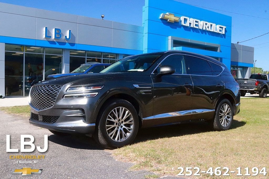 Equipped with Option Group 01, 12 Speakers, 4-Wheel Disc Brakes, 4.363 Axle Ratio, ABS brakes, Air Conditioning, Alloy wheels, AM/FM radio: SiriusXM, Android Auto & Apple CarPlay, Anti-whiplash front head restraints, Auto High-beam Headlights, Auto tilt-away steering wheel, Auto-dimming door mirrors, Auto-dimming Rear-View mirror, Auto-leveling suspension, Automatic temperature control, Brake assist, Bumpers: body-color, Compass, Delay-off headlights, Driver door bin, Driver vanity mirror, Dual front impact airbags, Dual front side impact airbags, Electronic Stability Control, Emergency communication system: Genesis Connected Services, Exterior Parking Camera Rear, Four wheel independent suspension, Front anti-roll bar, Front Bucket Seats, Front Center Armrest, Front dual zone A/C, Front reading lights, Fully automatic headlights, Garage door transmitter: HomeLink, Genuine wood console insert, Genuine wood dashboard insert, Genuine wood door panel insert, Heated door mirrors, Heated Front Bucket Seats, Heated front seats, Heated steering wheel, Illuminated entry, Knee airbag, Leather steering wheel, Leatherette Seating Surfaces, Low tire pressure warning, Memory seat, Navigation System, Occupant sensing airbag, Outside temperature display, Overhead airbag, Overhead console, Panic alarm, Passenger door bin, Passenger vanity mirror, Power door mirrors, Power driver seat, Power Liftgate, Power passenger seat, Power steering, Power windows, Radio data system, Radio:14.5" Navigation System w/AM/FM/HD Radio, Rain sensing wipers, Rear air conditioning, Rear anti-roll bar, Rear reading lights, Rear seat center armrest, Rear side impact airbag, Rear window defroster, Rear window wiper, Remote keyless entry, Security system, Speed control, Speed-sensing steering, Speed-Sensitive Wipers, Split folding rear seat, Spoiler, Steering wheel memory, Steering wheel mounted audio controls, Tachometer, Telescoping steering wheel, Tilt steering wheel, Traction control, Trip computer, Turn signal indicator mirrors, Variably intermittent wipers, and Wheels: 19" x 8.5J Medium Metallic Gray Alloy